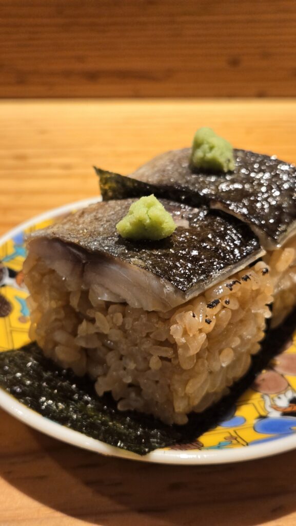 The first dish I ordered was the seared vinegared mackerel pressed sushi (aburi shimesaba oshizushi).